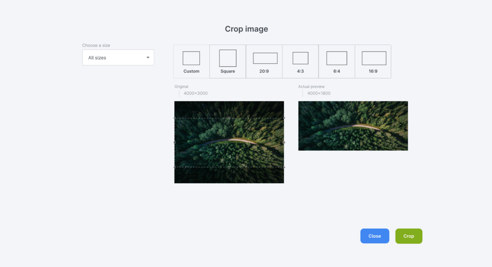 To ensure images are in the correct aspect ratio for the website, the system includes a cropping tool which removes the guess work and need for additional image editing software for content editors.